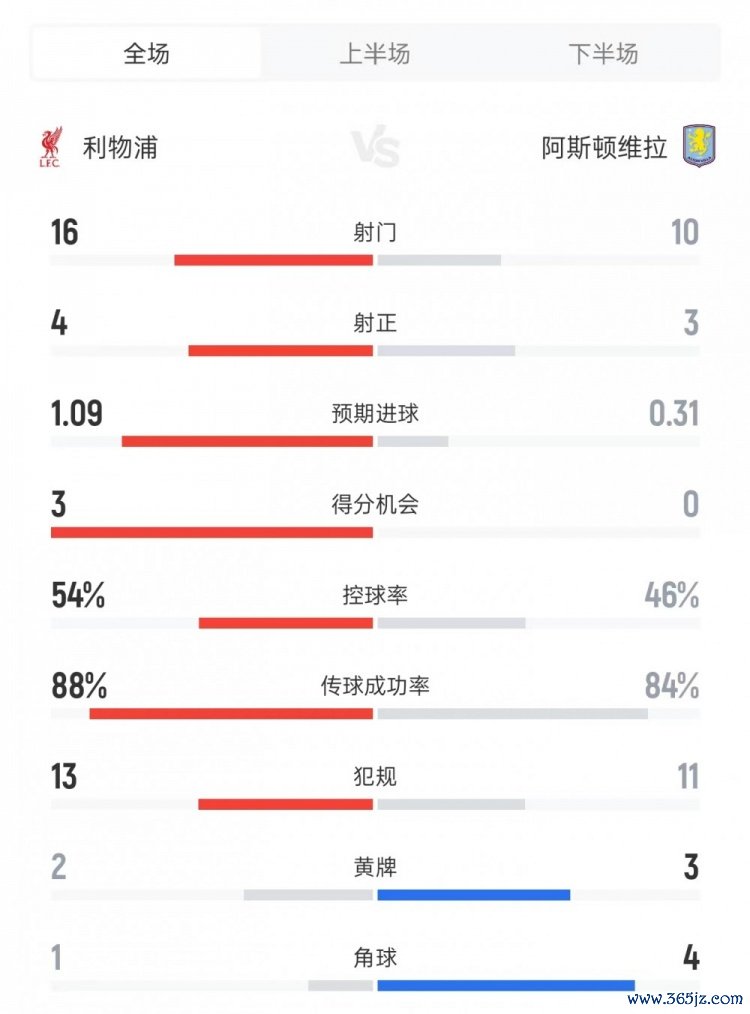 11月2日讯 英超第10轮比赛,利物浦主场2-0打败维拉。