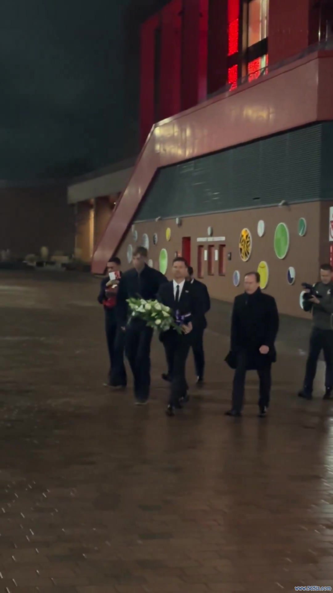 11月4日讯 北京时刻周三凌晨的欧冠联赛阶段第4轮比赛,皇马将在安菲尔德挑战利物浦。本场比赛之前,皇马主帅阿隆索、后卫赫伊森和阿诺德、公关总监布特拉格诺一瞥来到若塔纪念碑前,阿隆索献上鲜花向这名7月因车祸难过离世的利物浦时尚抒发敬意。