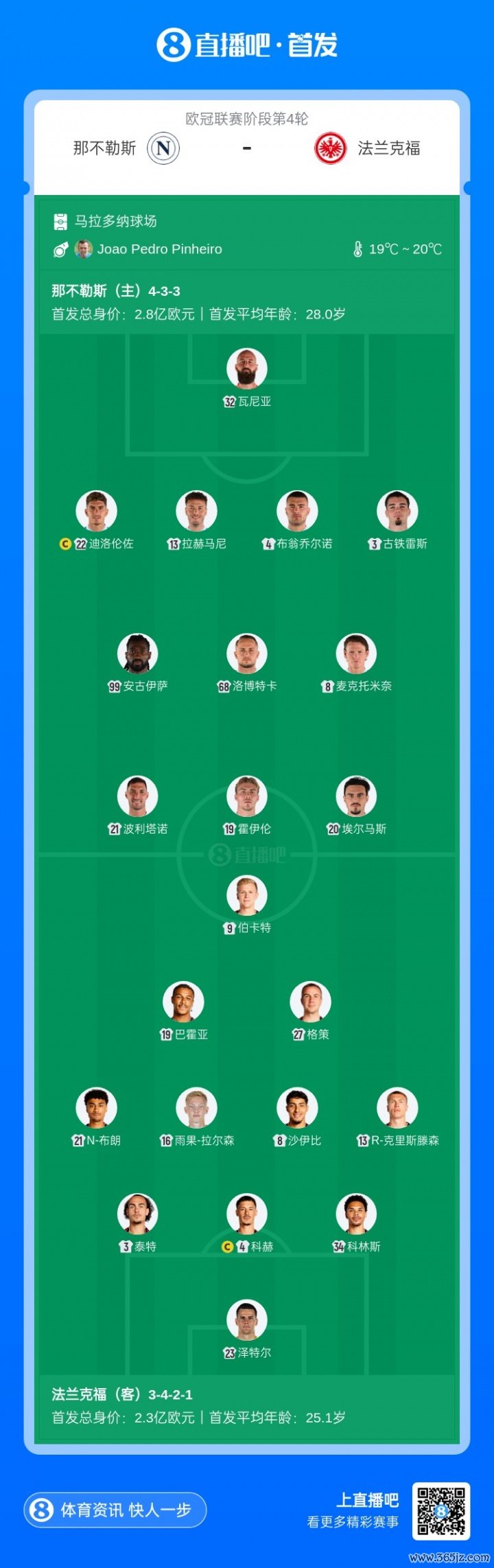 本场比赛前,那不勒斯与法兰克福均3轮1胜2负,积3分;分一名次欧冠第23、22,法兰克福因净胜球上风高1名。两边前次交锋要追猜想2023年的欧冠,那不勒斯3-0驯服法兰克福。