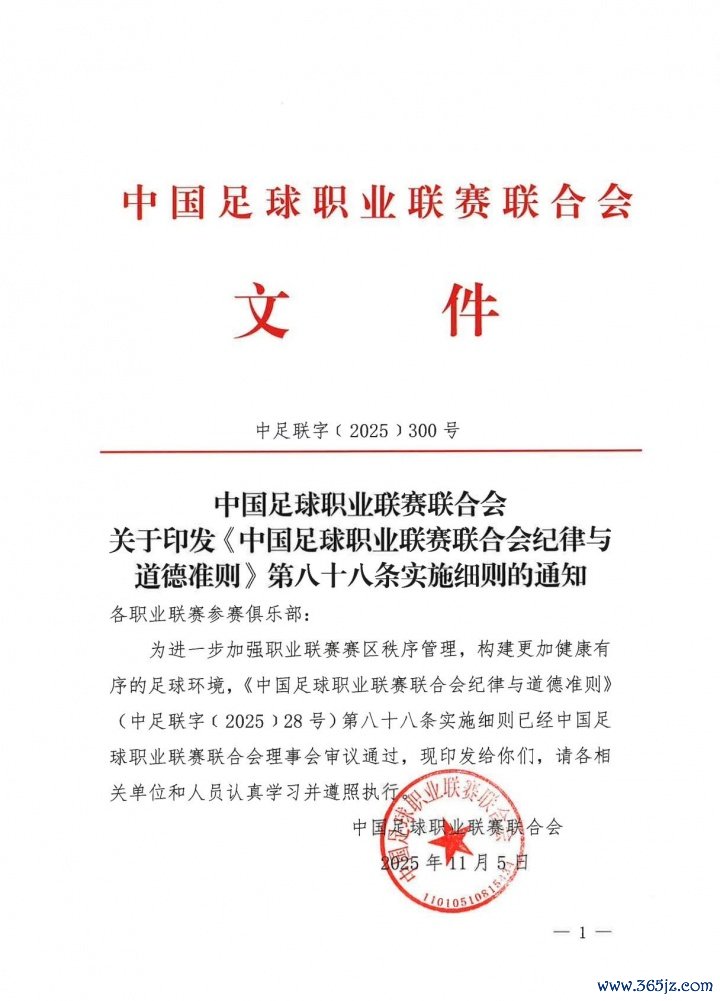 11月05日讯 中足联发布次第与谈德准则第八十八条践诺笃定,该笃定将于2026年联赛第一场比赛之日起践诺。