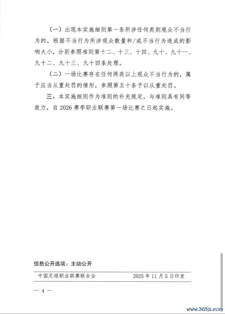 三、本践诺笃定行为准则的补充限定,与准则具有同等遵循,自2026赛季奇迹联赛第一场比赛之日起践诺。