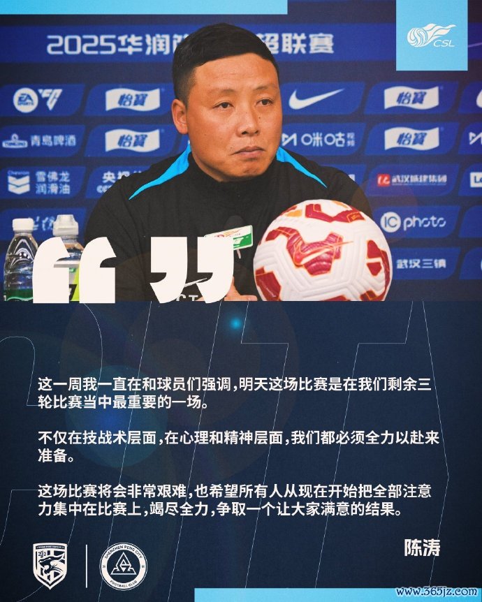 10月24日19:35,2025华润饮料中超联赛第28轮,深圳新鹏城赶赴客场武汉体育中心畅通场挑战武汉三镇。