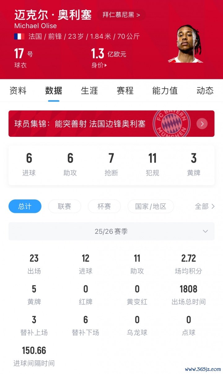 奥利塞现年23岁,司职右边锋,他本赛季为拜仁出战23次,孝敬12球11助,他与拜仁的公约在2029年到期,现身价1.3亿欧。据悉,奥利塞与拜仁莫得解约金要求。