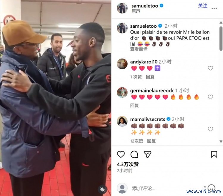 埃托奥在社媒配文写谈:“很欢快再次见到你,金球奖先生!👏🏿👏🏿👏🏿👏🏿 是的,埃托奥爸爸来了😂😂👌🏿👌🏿👌🏿”