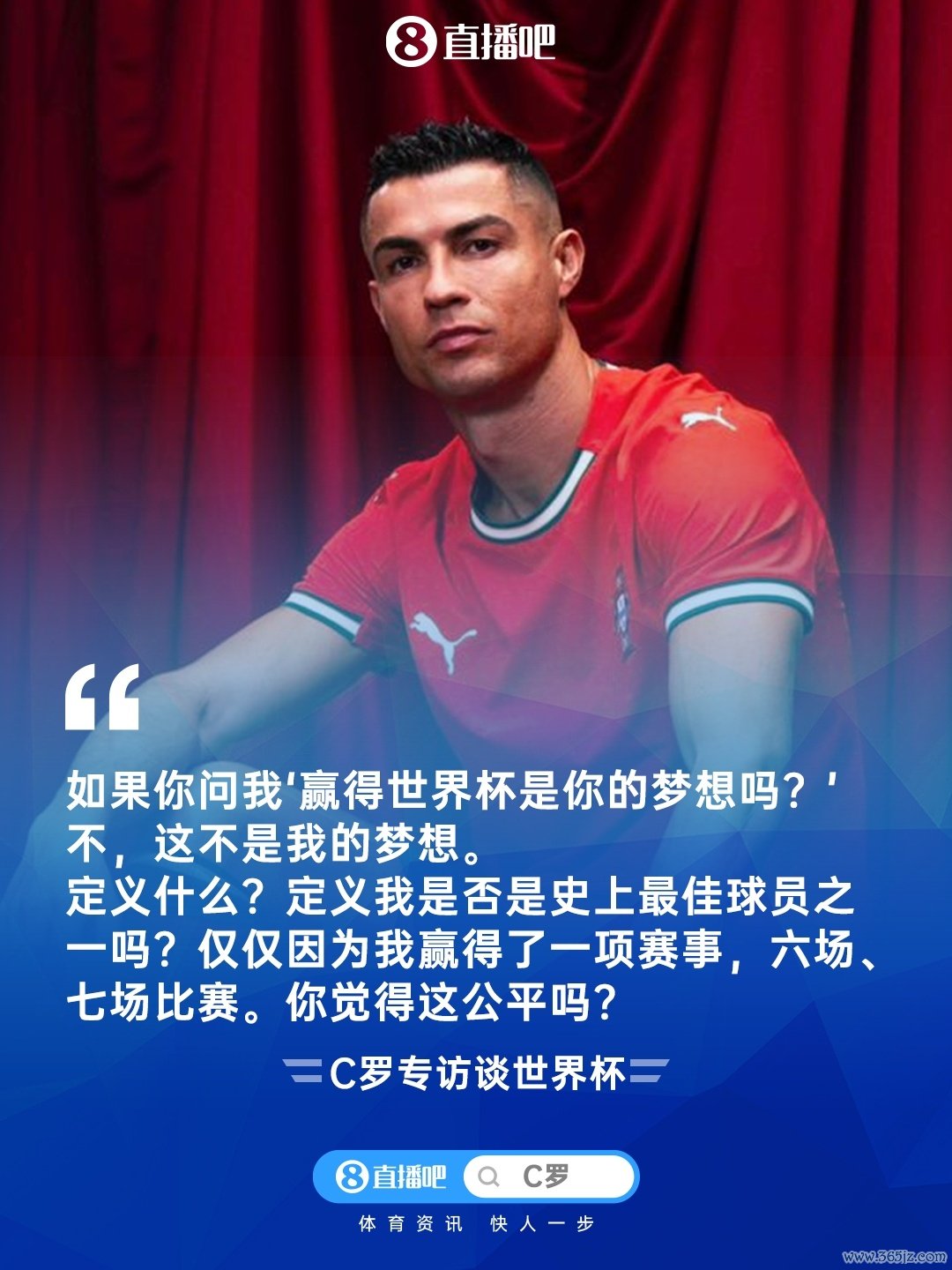 摩根专访C罗第二部分的预报中,摩根与C罗谈到了天下杯,C罗暗示“得回天下杯不是我的梦念念”。