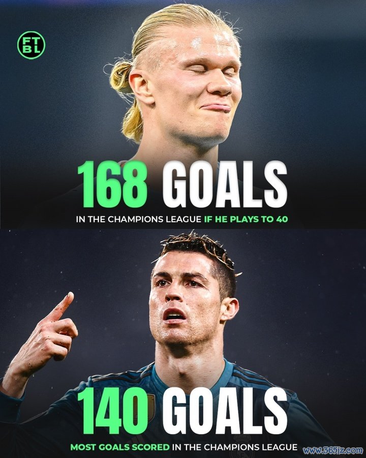 把柄AI展望,要是哈兰德八成一直参加欧冠赛事,他在40岁时的欧冠进球数将达到168粒,成为欧冠历史弓手榜第一。现在欧冠历史弓手王是C罗,他在183场欧冠比赛中打进了140球。