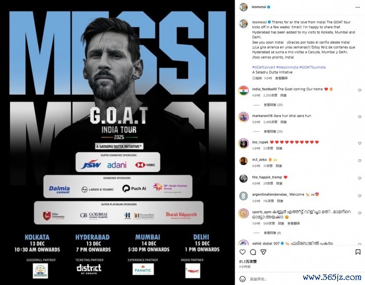 11月28日讯 梅西更新社媒,通知12月印度行新增一站海得拉巴。