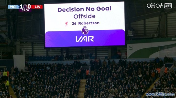 11月10日讯 曼城vs利物浦第38分钟,范戴克头球破门,但裁判判罚无效!