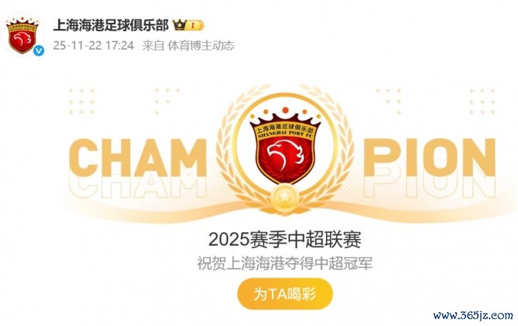 现在,海港队官博仍是更新了加冕中超冠军的动态,以缅念念这一历史性的技艺。