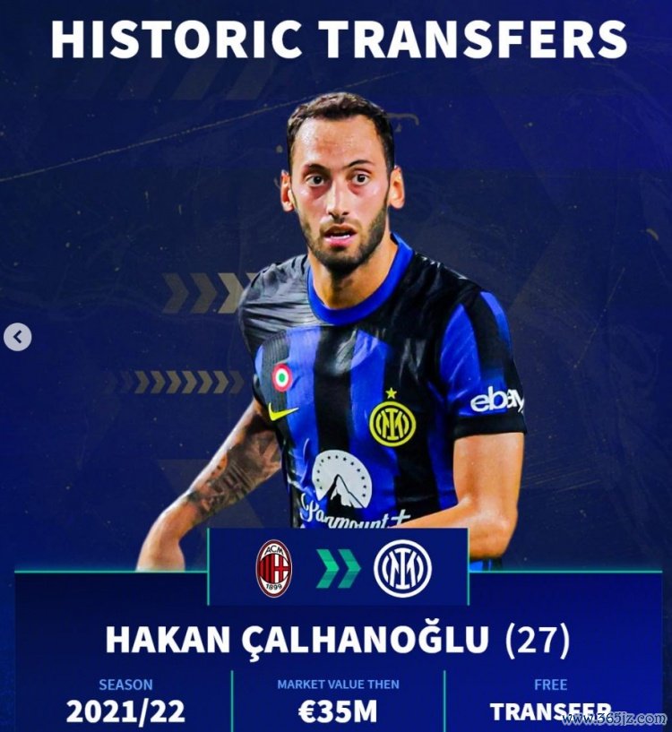 恰尔汗奥卢(米兰→国米),27岁,21-22赛季,身价3500万,解放身转会