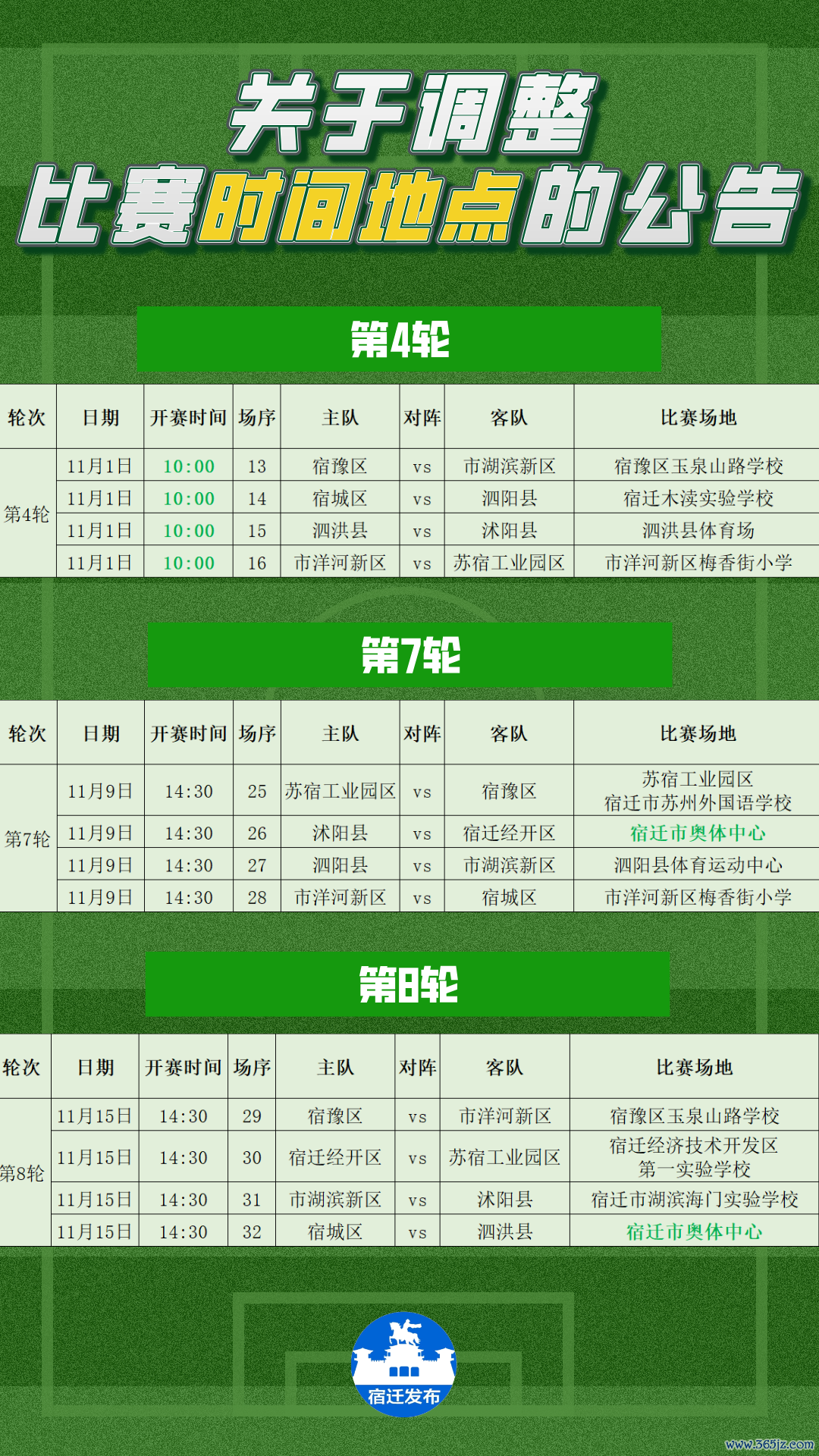 2.第7轮沭阳(主)vs宿迁经开区(客),比赛场合调遣至宿迁市奥体中心,比赛技能不变;
