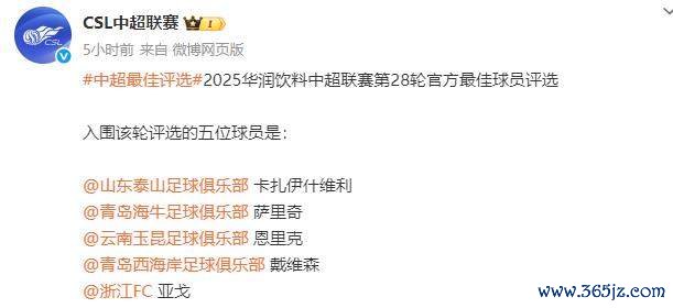 10月28日,中超官方公布第28轮最好球员候选名单,鉴识是瓦科·卡扎伊什维利、萨里奇、恩里克、戴维森以及亚戈·卡列洛。