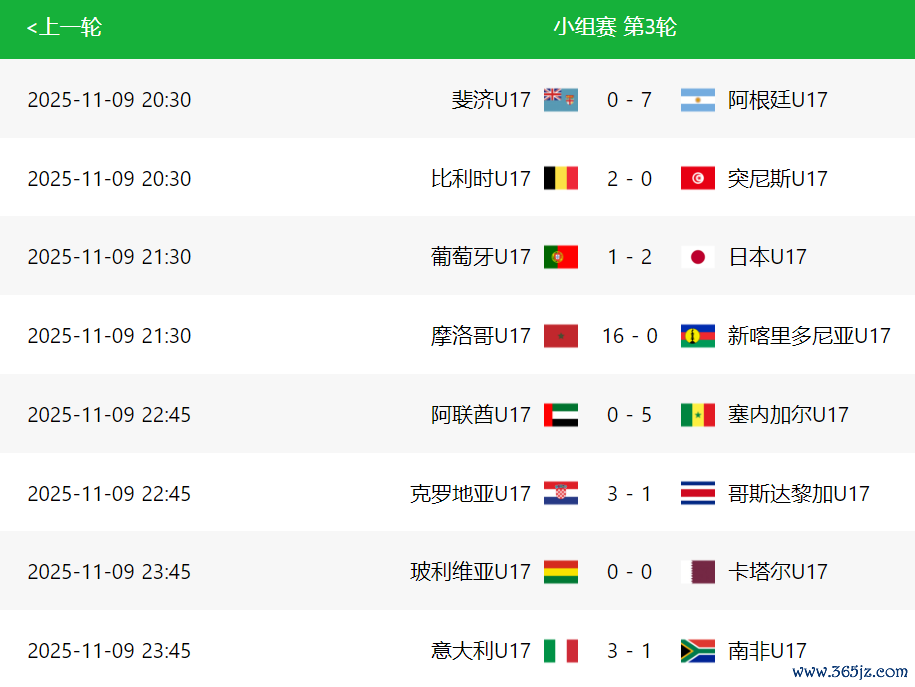 这个比赛日其他松手的赛况,摩洛哥16-0狂胜新喀里多尼亚、阿根廷7-0大捷斐济、阿联酋0-5惨败塞内加尔、卡塔尔0-0打平玻利维亚、比利时2-0打败突尼斯、意大利3-1驯顺南非、克罗地亚3-1拿下哥斯达黎加。